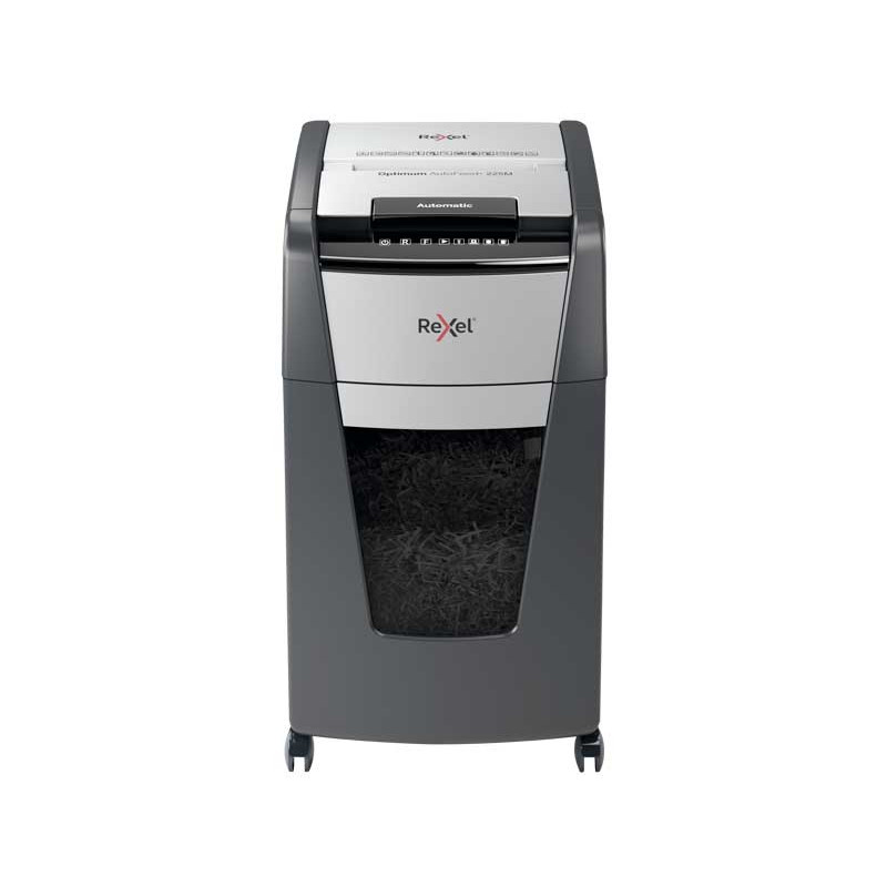 - Destructora automática - Destruye hasta 750 hojas de una vez (80 grs) - Micro corte de 2x15 mm - Nivel de seguridad P-5 - Destruye grapas y clips - Capacidad papelera 140L